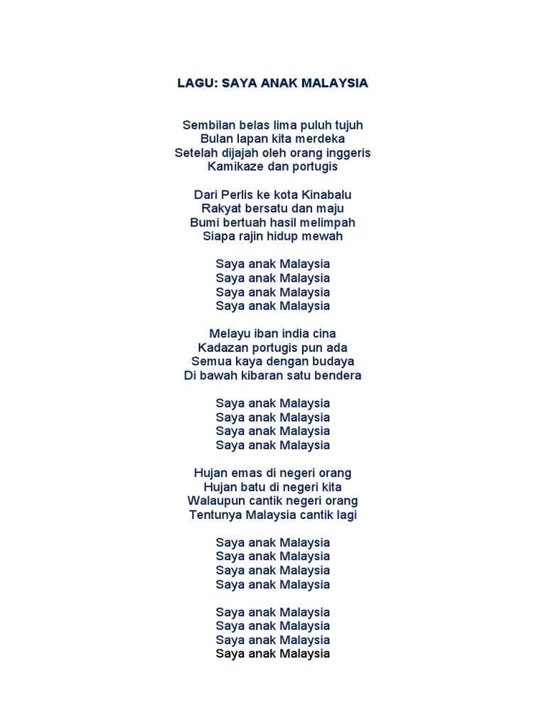 Saya Anak Malaysia Lirik / Saya anak merdeka x 4 hujan emas dinegeri orang, hujan batu dinegeri kita.. Lirik lagu dan video klip. Cantik lagi saya anak malaysia x4 melayu iban india cina kadazan portugis pun ada semua kaya dengan budaya di bawah kibaran satu bendera saya anak. Webtvasia 5.755.216 views2 year ago. Buruh nelayan dan juga petani. Saya anak malaysia is a malay album released on aug 2016.